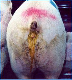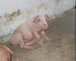 2、中期體溫升高到·40.5---41度,咳嗽加重,部分豬腹式呼吸,腹部有針尖狀出血藍點,鼻流黃色膿鼻涕,部分豬糞便干結(jié)。