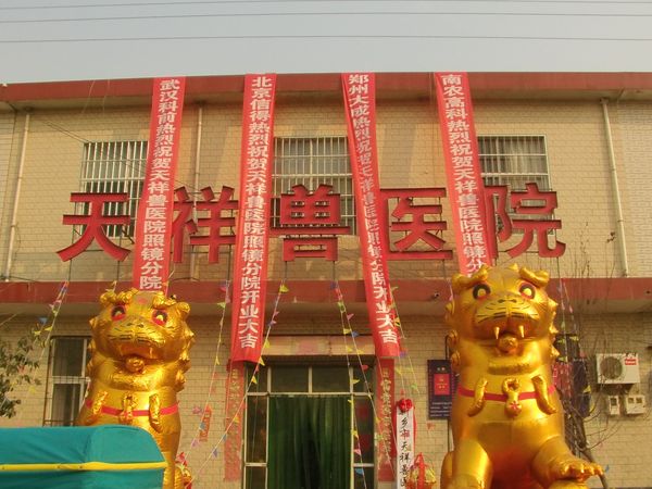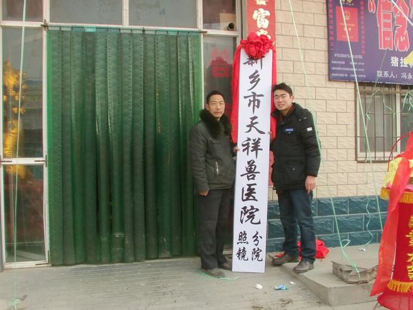 熱烈祝賀天祥獸醫(yī)院照鏡分院隆重開業(yè),天祥獸醫(yī)院照鏡分院于2012年通過國家農業(yè)部獸藥GSP認證,2012年12月15日正式開業(yè)。出席開業(yè)慶典的嘉賓有新鄉(xiāng)市政協(xié)委員、新鄉(xiāng)市工商聯(lián)主席、獲嘉縣人大代表、新鄉(xiāng)天祥藥業(yè)有限公司董事長