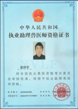 熱烈祝賀新鄉(xiāng)天祥藥業(yè)有限公司員工白有杰同志、郭帥軍同志于2010年12月順利通過,全國執(zhí)業(yè)獸醫(yī)資格.